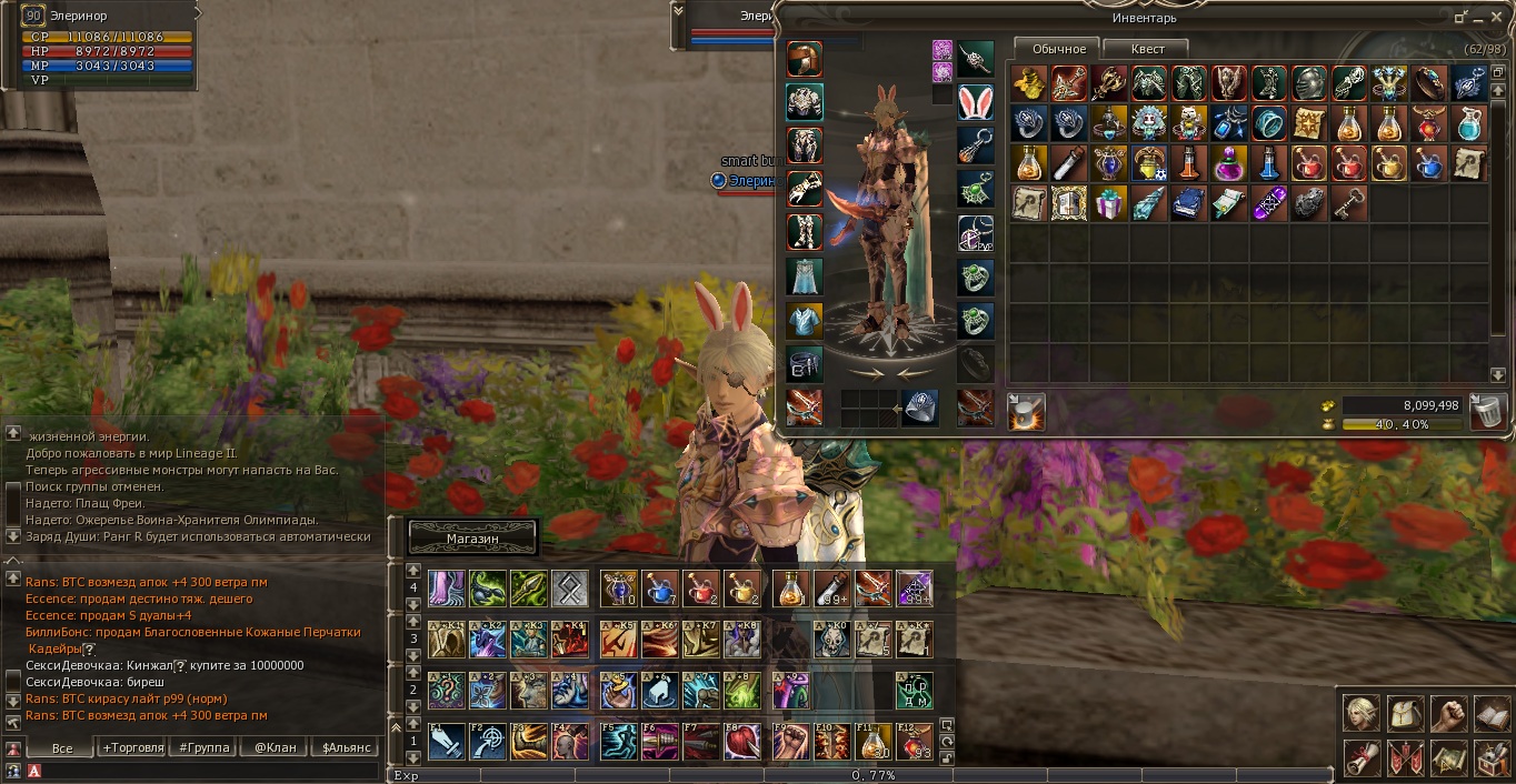 1. Никнейм, имя, возраст? Элеринор, Николай, 33 2. Соглашаешься с правилами Клана? естаственно 3. Насколько большой опыт игры в Lineage II? 6 лет 4. В какое время ты играешь? 20.00-00.00 МСК 5. Профессия и уровень? разбойник одала 90 6. Во что одет? (скрин персонажа, можно ссылкой с radikal.ru) кайдера 7. В каких кланах был и что в них не устраивало? был в в парочке нубокланов, не устраивало то, что они нубокланы))) 8. Кто пригласил, направил на форум? (обязательно ник или источник) Tige 9. Есть ли возможность пользоваться голосовой связью? да 10. Если есть вопросы к Клану, то напиши их тут. нет вопросов