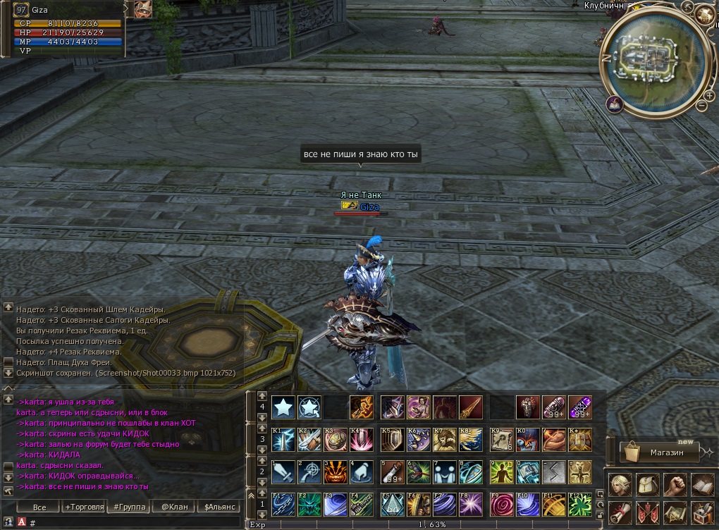 2 хила 97+ роняли танка что об этом говорит? когда хил 91лвл 1 свободно держал меня....Да и после моего ухода или выхода как Вам угодно кикнули хила из кп ... а то что я не зашла на осаду при условии зайти в клан ничего не писать тупо помочь а по завершению выйти из клана. Я не говноТАНК которым можно пользоваться так как им хочецо мне пофигу я соло игрок и без кп куда быстрее и кач и фарм.... Добавлено (11.05.2013, 20:36) --------------------------------------------- фергоидон не ври а только в башне пвп было вы пр делали про ло вообще молчу...